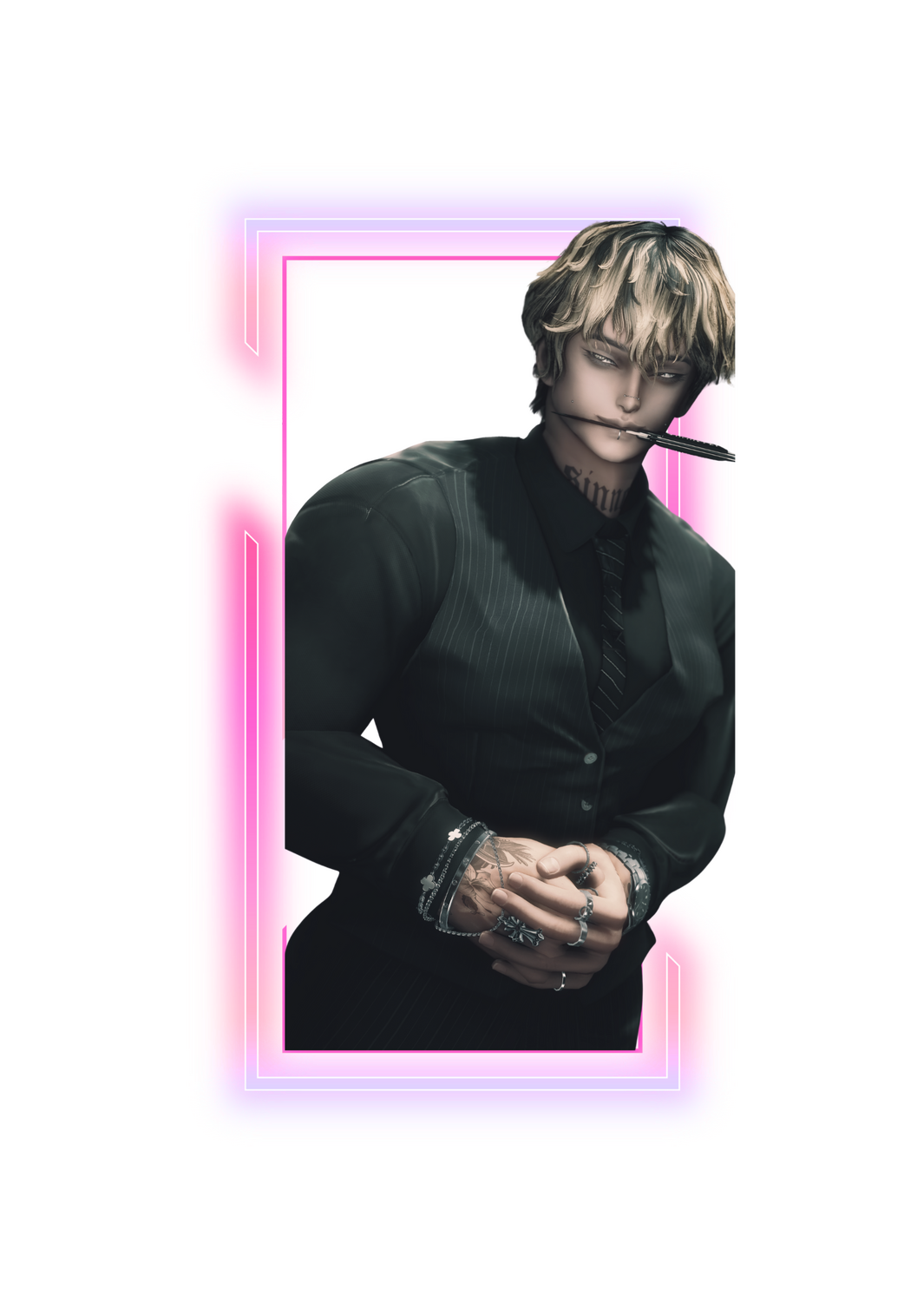 Age: UnknownPronouns: He/HimSexual Preference: If you have money, he's interested. (ooc: do not actually give me gil! this is for rp purposes only!)Background: An only child of the old standing Raanthe family, a name embroiled in controversy. He's not the official heir and has no interest in doing so. He hates the shackles that come with authority and is only looking for a good time. Perpetually bored, he's much more interested in anything that feels good. If you have the means to pay for his lifestyle, he'd likely to drain you dry in more ways than one.Hooks: