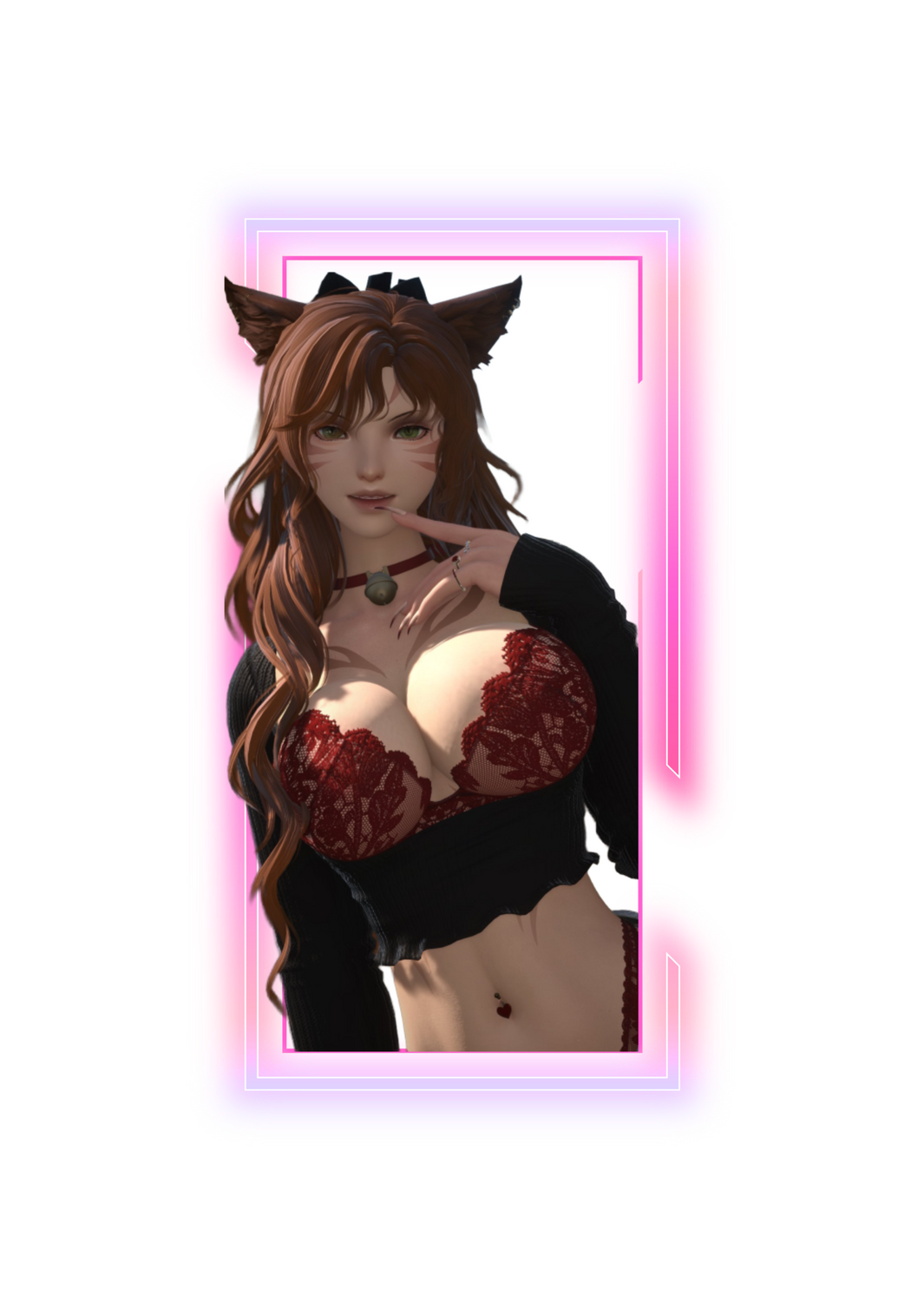 Sexual Preference: Pansexual - SwitchBackground: Your favorite catgirl next door is here! Hailing from the sun-kissed grasses of the Azim Steppes comes a Miqo'te with a heart as fiery as her name: Gemini Embers, though most just call her Gem—and by the end of the night, you probably will too. With olive green eyes, auburn hair, and a radiant smile framed by a mischievous pair of fangs, she carries the sun’s warmth wherever she roams. Her lion’s tail flicks to the rhythm of her moods—playful, fierce, or somewhere delightfully in between. Soft in all the right places and every inch of her—pierced or not—knows how to command attention.She’s got a taste for fruity drinks, open flames, and dangerous games, especially if they involve dancing, flirting, or a little death roll on the side. You’ll find her in the glow of the party’s heart—laughing, twirling, teasing—wrapped in the bold hues of red, black, and gold, her favorite colors and warning signs all in one.Gem is a lover of rhythm—be it music, motion, or the beating of another’s heart under her touch. A playful flirt, she’s got a sharp tongue (pierced, of course), a quicker wit, and a laugh that can light up even the gloomiest corner. The embodiment of sweet heat and slow-burning chaos. And no matter what, she'll always make you burn for more. ♥Likes: